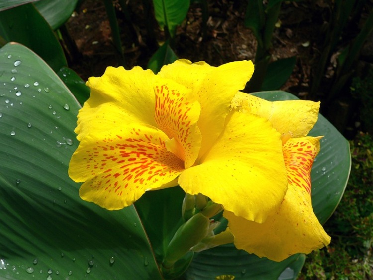 Канна "Солнечная красавица" требует регулярного полива и подкормки для обильного цветения. Важно обеспечить растению защиту от сильных ветров и заморозков. На зиму клубни рекомендуется выкапывать и хранить в прохладном, сухом месте.