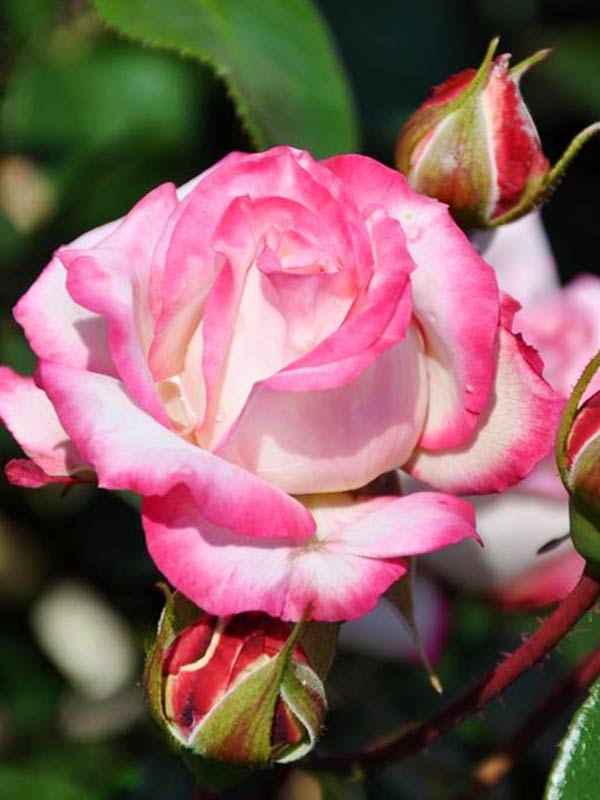 Цветки Роял Минуэто привлекают внимание своей элегантной формой и насыщенным цветом. Они собраны в крупные соцветия, что придает кусту особую декоративность. Лепестки имеют нежный кремовый оттенок с яркими малиновыми краями, создавая эффектный контраст и добавляя шарма вашему саду.