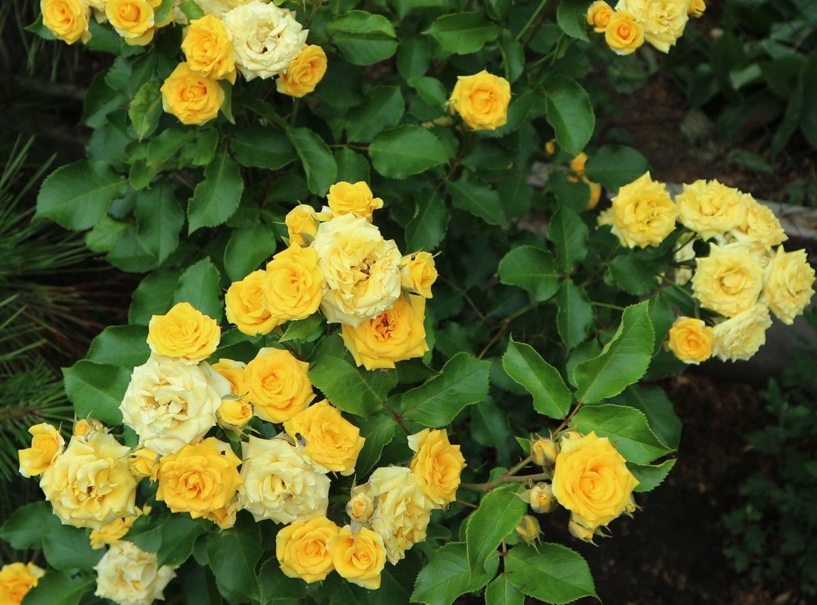 Спрей роза Йеллоу Эвелин (Yellow Eveline) – это великолепное украшение для вашего сада, которое привнесет яркие солнечные оттенки и изысканный аромат. Этот сорт розы отличается обильным цветением и компактным кустом, что делает его идеальным для создания живых изгородей, бордюров или клумб.