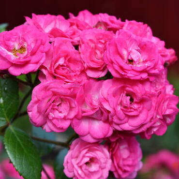 - Цветы: мелкие, махровые, насыщенного розового цвета